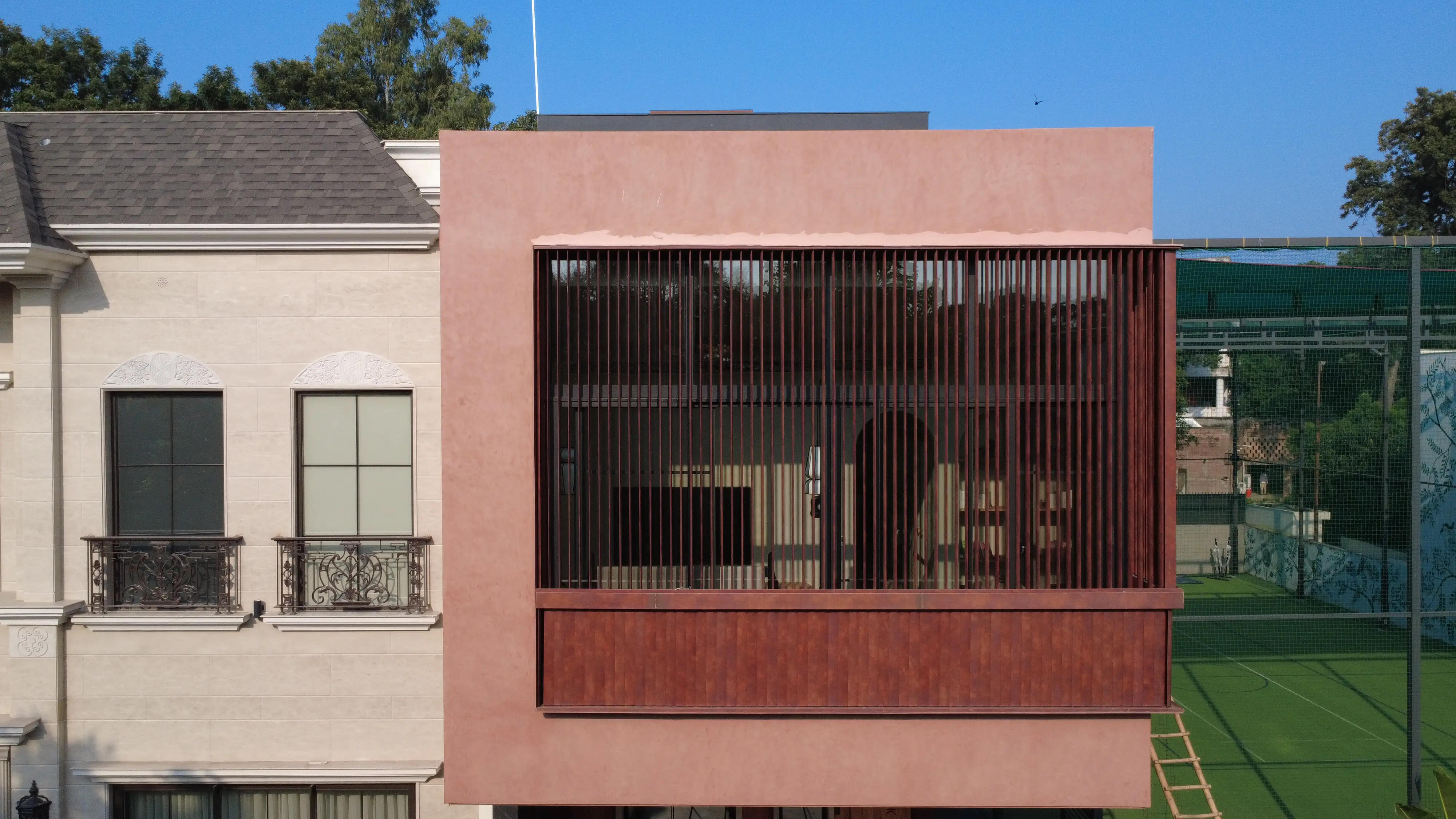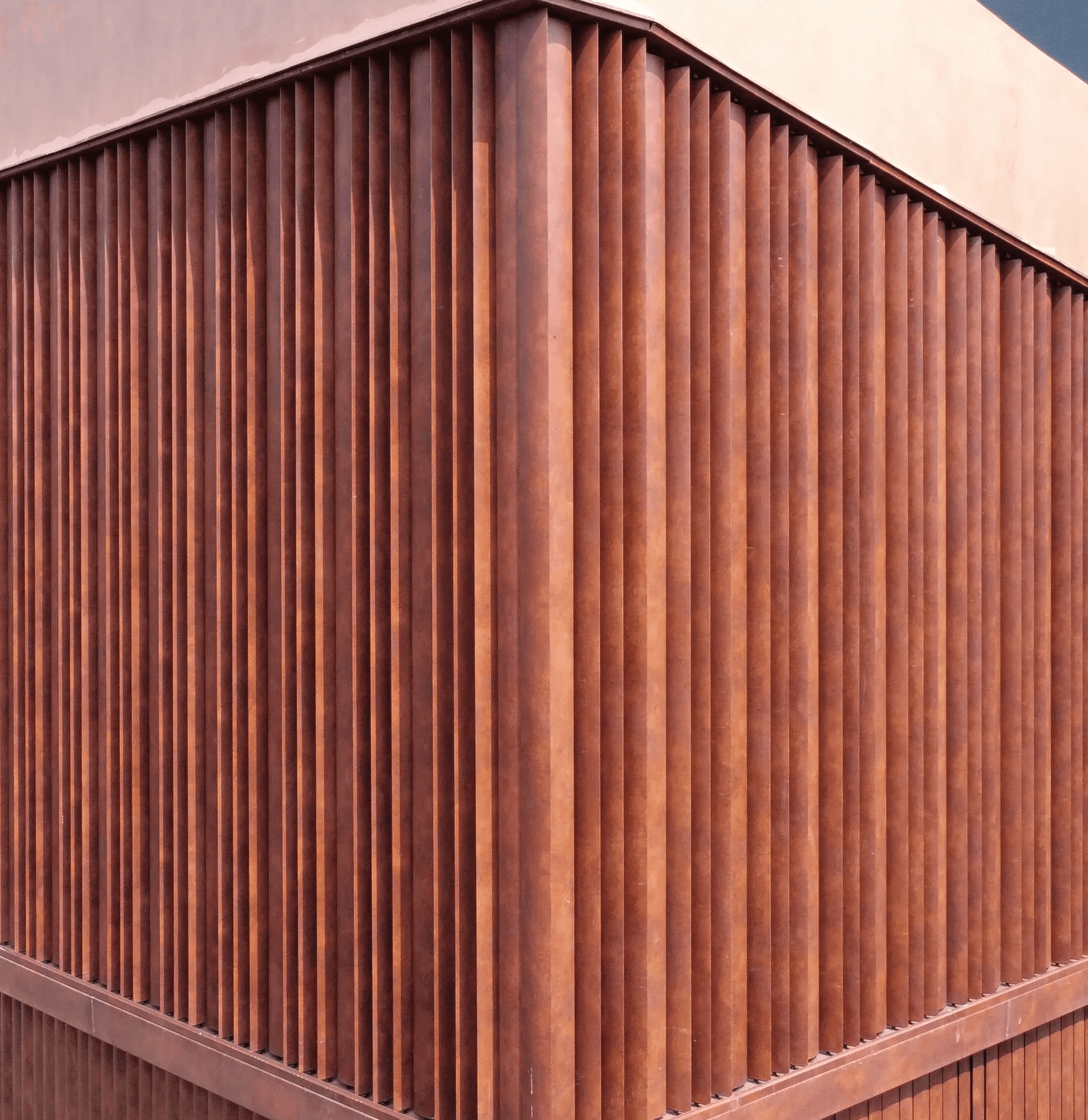 This outhouse uses motorised louvers to bring flexibility into an otherwise solid form. The panels shift as needed, opening up or closing down to suit different moments, turning the facade into something active rather than fixed. The result is a building that feels precise and intentional, with movement introduced in a way that is subtle, controlled, and quietly engaging.